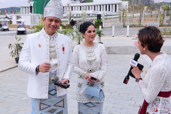 Melengkapi pakaian adatnya, Menteri AHY mengenakan hiasan kepala, jas, celana panjang, dan sarung pendek sepanjang lutut. Sementara itu, Annisa Pohan Yudhoyono mengenakan amar/mahkota dari logam berwarna emas berbentuk dua naga berebutan mustika dan tumpukan kembang goyang yang dipercantik dengan hiasan bunga serta ronce dari kelopak mawar merah dan kembang melati yang menguncup untuk melambangkan kesucian.