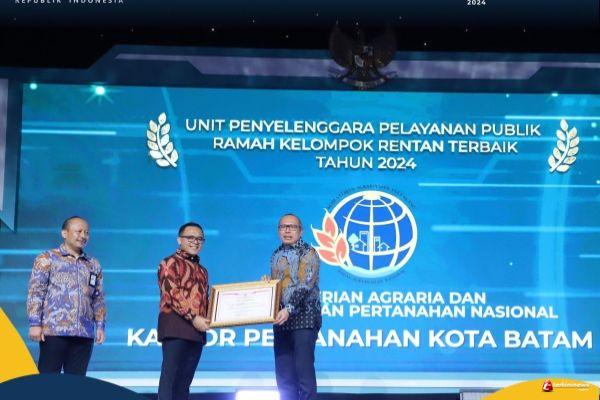 Penghargaan kedua ialah kategori Penyelenggara Pelayanan Publik Ramah Kelompok Rentan Terbaik Tahun 2024 untuk Kantah Kota Batam. Kementerian PAN-RB menilai, Kantah Kota Batam telah menyediakan fasilitas-fasilitas yang membantu kelompok rentan, antara lain terdapat buku panduan dengan huruf braille untuk penyandang tunanetra dan guiding block menuju Loket Prioritas.