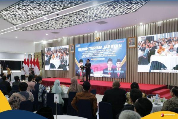 JAKARTA - Mengawali sambutannya dalam acara Serah Terima Jabatan, Senin (21/10/2024) di Kantor Kementerian ATR/BPN, Jakarta, Menteri Agraria dan Tata Ruang/Kepala Badan Pertanahan Nasional (ATR/BPN), Nusron Wahid mengajak seluruh tamu yang hadir untuk mengirim doa bagi Alm. Ibu Ani Yudhoyono.