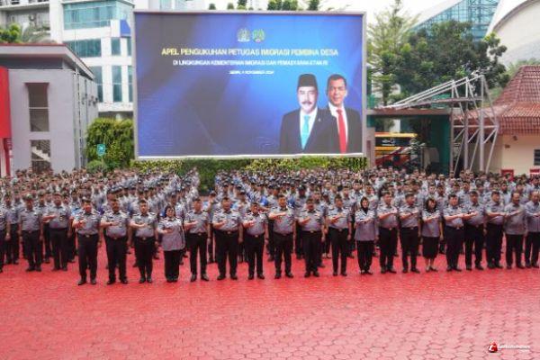 JAKARTA - Kementerian Imigrasi dan Pemasyarakatan (Kementerian Imipas) menetapkan 146 orang petugas imigrasi dari seluruh Indonesia sebagai Petugas Imigrasi Pembina Desa (Pimpasa) dalam Apel Besar Pengukuhan Petugas Imigrasi Pembina Desa, Senin (04/11/2024).