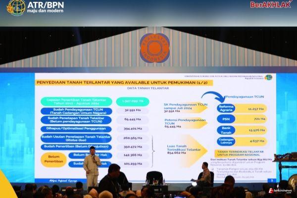 "Potensi tanah telantar itu sebanyak 1,3 juta hektare. Ini dari tanah Hak Guna Usaha (HGU), Hak Guna Bangunan (HGB), Hak Pengelolaan (HPL) habis, yang sudah terindikasi telantar seluas 854.662 hektare, dan ini harus dipergunakan seluas-luasnya untuk kemakmuran rakyat," kata Nusron Wahid saat menjadi pembicara kunci dalam Rapat Kerja Nasional (Rakernas) Real Estat Indonesia (REI), di The Trans Luxury Hotel, Kota Bandung, Kamis (05/12/2024).