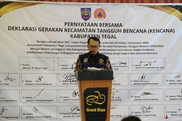 Hal tersebut disampaikan Direktorat Manajemen Penanggulangan Bencana dan Kebakaran Kementerian Dalam Negeri Evan Fardianto saat memberikan sambutannya di acara Deklarasi Gerakan Kecamatan Tangguh Bencana (Kencana) Kabupaten Tegal yang dihadiri 18 camat dan tamu undangan lainnya di Hotel Grand Dian Slawi, Selasa (03/12/2024).