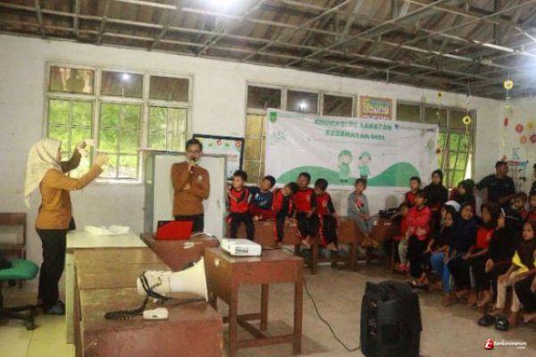 Edukasi kesehatan gigi untuk siswa SDN 007 Galang menjadi bagian menarik dari kegiatan ini. Meski berlangsung di teras kelas akibat hujan deras, siswa-siswi tetap antusias mengikuti kegiatan perawatan dan praktik menyikat gigi bersama.