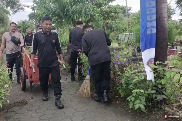“Bersama anggota kita melakukan kerja bakti membersihkan lingkungan TPU Panggung yang akan menggelar acara Khaul Mbah Panggung Syarif Abdurahman,” ucap Kompol Suratman
