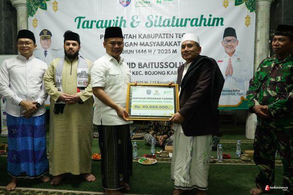TEGAL – Bupati Tegal Ischak Maulana Rohman menyatakan siap melanjutkan agenda dan hasil pembangunan dari kepemimpinan bupati-bupati sebelumnya. Pernyataan ini ia sampaikan saat memberikan sambutan di acara tarawih dan silaturahim atau tarhim dan sekaligus memberikan bantuan dari Badan Amil Zakat Nasional (Baznas) Kabupaten Tegal senilai Rp40 juta di Masjid Baitus Sholihin, Desa Tuwel, Kecamatan Bojong, Kamis (14/03/2024).
