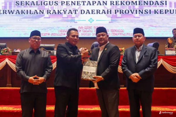 Dalam rapat paripurna tersebut, Gubernur Kepri H. Ansar Ahmad hadir didampingi Wakil Gubernur Nyanyang Haris Pratamura, menerima langsung dokumen rekomendasi dari Ketua DPRD.