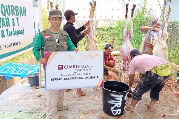 BATAM - TERKININEWS.COM — Suasana hari raya Idul Adha yang penuh dengan gema takbir dan tahmid dimanfaatkan DT Peduli Kepri untuk menyalurkan amanah dari Bank CIMB Niaga Syariah Batam. Pada momen tersebut, dilakukan penyembelihan hewan kurban sebanyak 5 ekor kambing.