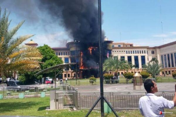 Gedung Asrama Haji Medan Terbakar Hebat, Api Berkobar di Lantai Dua