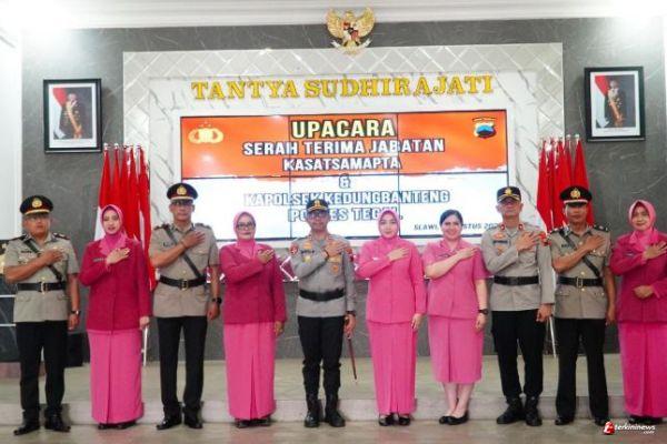 Kapolres Tegal Pimpin Sertijab Kasatsamapta dan Kapolsek Kedungbanteng