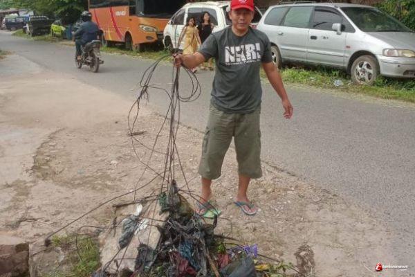“Kami temukan cukup banyak kawat sisa kabel internet yang jadi sumber penyumbatan,” ungkap Tartib, salah satu warga Perumahan Pemda 2.