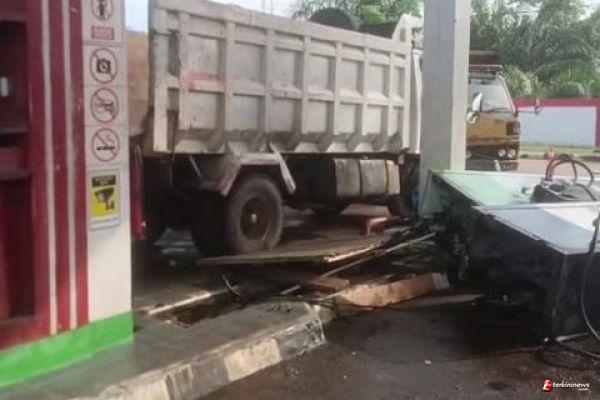BBM Subsidi Jadi Rebutan, Truk Tabrak Mesin SPBU di Sungai Ambawang