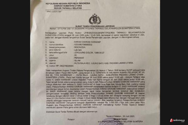 Kasus tersebut dilaporkan oleh Ahmad Daerobi Harahap melalui laporan polisi Nomor LP/B/202/IV/2025/SPKT/POLRES TAPSEL tertanggal 30 Juni 2025, namun hingga kini belum ada kejelasan hukum yang diterima pihak pelapor.