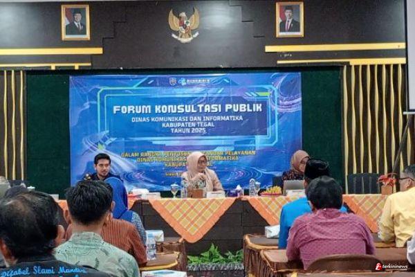 TEGAL - TERKININEWS.COM - Guna meningkatkan mutu layanan kepada masyarakat, Dinas Komunikasi dan Informatika (Diskominfo) Kabupaten Tegal menggelar forum konsultasi publik. Forum ini bertujuan menjaring aspirasi dan masukan dari berbagai elemen masyarakat dalam rangka penyusunan standar pelayanan yang lebih relevan dan akuntabel. Kegiatan tersebut dilaksanakan pada Kamis (30/10/2025) di Gedung Pertemuan KPRI Bhakti Husada, Slawi.