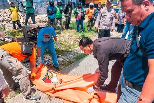 Tubuh korban terpental dan jatuh ke trotoar. Setelah diperiksa, korban sudah tidak bernyawa dengan luka bakar di tangan dan luka di kepala.
