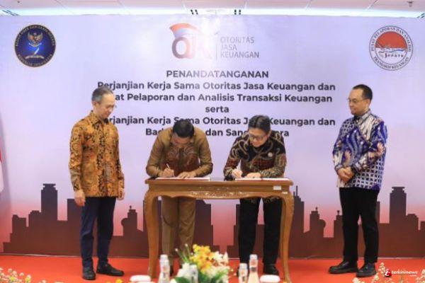 Penandatanganan Perjanjian Kerja Sama (PKS) oleh OJK dan PPATK melingkupi Penguatan Koordinasi dan Kerja Sama dalam rangka Pencegahan dan Pemberantasan Tindak Pidana Pencucian Uang (TPPU), Tindak Pidana Pendanaan Terorisme (TPPT) dan Pendanaan Proliferasi Senjata Pemusnah Massal (PPSPM) di Sektor Jasa Keuangan.