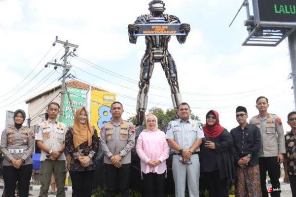 Kapolres Tegal Resmikan Patung Robot "Knalpot Brong" & Renovasi Exit Tol Adiwerna, Sertai Santunan Bagi Anak Yatim