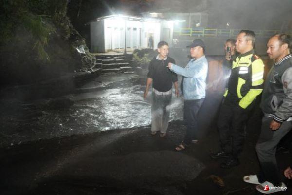 “Benar adanya banjir di hulu akibat curah hujan tinggi. Material banjir sempat merusak pipa penyalur air panas ke beberapa tempat tinggal wisatawan,” ungkapnya saat menginjau lokasi.