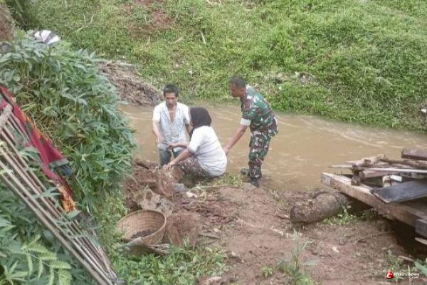 Babinsa Melaksanakan Pemantauan Tanah Longsor Wilayah Plantungan dan Banjir di Patean