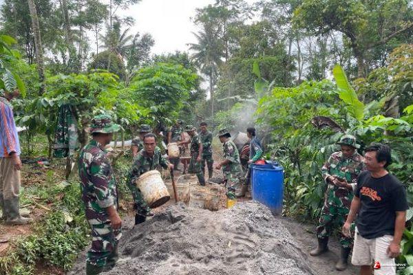 KENDAL – TERKININEWS.COM - Semangat gotong royong terpancar jelas di lokasi pelaksanaan TNI Manunggal Membangun Desa (TMMD) regular ke 127 di Desa Gedong, kecamatan Patean. Sejumlah personel TNI bersama masyarakat setempat terlihat sangat antusias bekerja sama dalam pengerjaan infrastruktur fisik berupa pengecoran jalan 1000 meter yang menghubungkan dusun Tempuran dengan dusun Kandang di desa tersebut, Rabu (10/2).