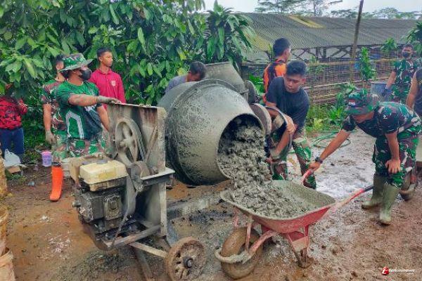 Salah satu warga, Suyono menyampaikan antusiasme warga terlihat jelas melalui budaya gotong royong yang kembali menggelora. “Setiap harinya, puluhan warga bahu-membahu bersama personel TNI untuk menyelesaikan pekerjaan di lokasi pengecoran jalan dan Lokasi ehab RTLH”, terang Suyono