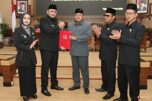 KOTA TEGAL - TERKININEWS.COM - Dewan Perwakilan Rakyat Daerah (DPRD) Kota Tegal resmi mengesahkan dua Rancangan Peraturan Daerah (Raperda) menjadi Peraturan Daerah (Perda) dalam Rapat Paripurna yang digelar di Ruang Rapat Paripurna DPRD Kota Tegal, Kamis (5/3/2026). Kedua peraturan yang disahkan tersebut adalah Perda tentang Perusahaan Perseroan Daerah Bank Perekonomian Rakyat (BPR) Bank Bahari Kota Tegal dan Perda tentang Kawasan Tanpa Rokok.
