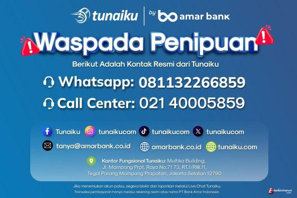 Layanan ini memungkinkan Anda memenuhi kebutuhan tanpa menyentuh dana darurat. Untuk informasi lebih lanjut atau prosedur pembatalan, cara menghubungi CS Tunaiku bisa melalui WhatsApp di 081132266859, telepon (021) 40005859, atau email tanya@amarbank.co.id.