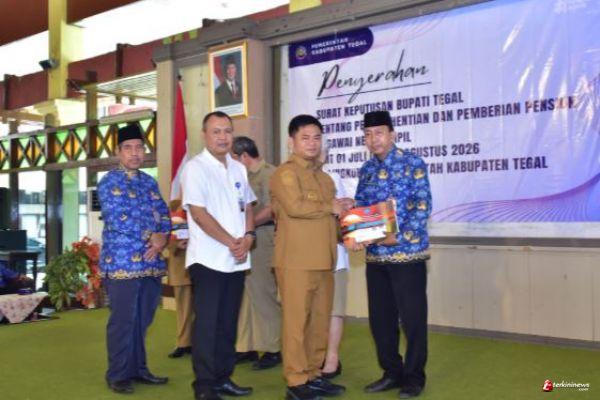 TEGAL - TERKININEWS.COM - Sebanyak 90 Pegawai Negeri Sipil (PNS) di lingkungan Pemerintah Kabupaten Tegal resmi memasuki masa purna tugas. Penyerahan Surat Keputusan (SK) pensiun dilakukan langsung oleh Bupati Tegal, Ischak Maulana Rohman, di Pendopo Amangkurat, Senin (27/4/2026).
