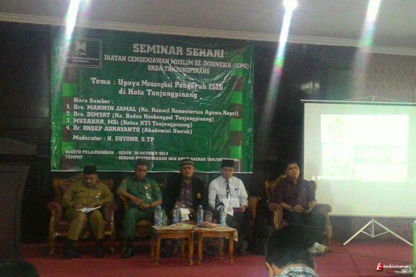 Seminar sehari ini diberi tema "Upaya Menangkal Pengaruh ISIS di Kota Tanjungpinang" dan dibuka oleh Sekda Kota Tanjungpinang. Diantara yang hadir diantaranya Ketua ICMI Orda Tanjungpinang Drs. Juramadi Esram, SH.MH.MT, Ketua pelaksana William H.SH.MH, Muzahar, MSi., Ketua HTI Tanjungpinang, Drs. Marwin Jamal (Ka. Kanwil Kementrian Agama Kepri), Dr. Oksep Adhayanto (Akademisi Umrah) dan Drs. Dimyat, Kesbangpol Tanjungpinang (Bid. Wawasan Kebangsaan).