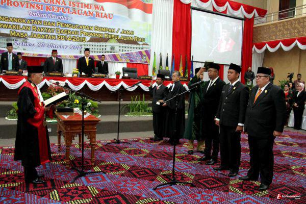Pengambilan sumpah dipandu oleh Kepala Kejaksaan Tinggi Riau. Keempat pimpinan DPRD didampingi rohaniawan kristen dan agama Islam.
