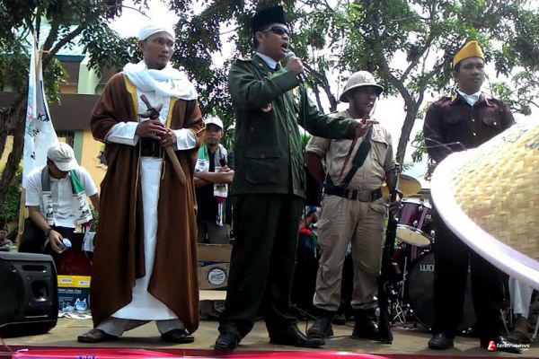 "Bangsa Indonesia ini diakui merdeka, termasuk karena adanya dukungan dari Palestina, tetapi kenyataannya hari ini saudara-saudara kita yang ada disana, anak-anak balita, orang jompo, semuanya dibantai Israel," Tegas pria yang berpakaian mirip presiden Soekarno dari atas panggung aksi solidaritas.