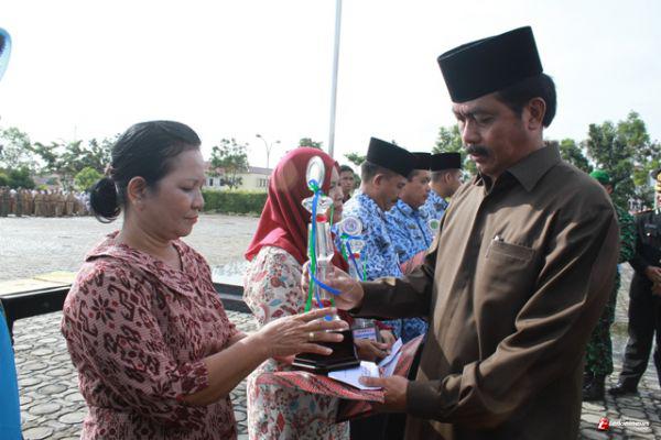 KARIMUN - Tiga peringatan masing-masing Hari Guru Nasional (HGN) 2014, HUT ke-69 Persatuan Guru Republik Indonesia (PGRI) dan HUT ke-43 Korps Pegawai Negeri Republik Indonesia (KORPRI) dilakansakan di Halaman Kantor Bupati Karimun.