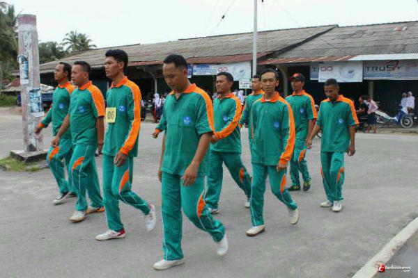 KARIMUN (HK) - UPT Dinas Pendidikan Kundur Utara/Barat/Belat bersama PGRI gelar gerak jalan bagi para guru dalam memeriahkan Hari Guru Nasional dan HUT PGRI ke 69 pada Senin (1/12) di Kundur Barat.