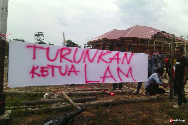 Puluhan masa dengan spanduk berorasi "Turunkan Ketua LAM" mendatangi sejumlah dinas yang ada di Daik, Ibukota kabupaten Lingga, Rabu (10/12/2014).