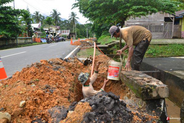 LINGGA - PT Telkom Indonesia mulai melakukan pembangunan instalasi perangkat jaringan telekomunikasi untuk pusat pemerintahan Kabupaten Lingga di Daik Lingga, Senin (8/12). Saat ini, pihak pekerja sedang melakukan penggalian lobang untuk menanam kabel fiber optik di sepinggiran jalan mulai dari tower BTS jalan mesjid Sultan Kampung Tembaga, menuju area perkantoran pemerintah Kabupaten Lingga jalan Istana Robat.