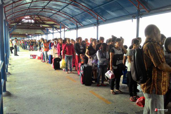 TANJUNGPINANG - Sebanyak 219 Tenaga Kerja Indonesia (TKI/W-B) bermasalah di Deportasi negeri jiran Malaysia ke Tanjungpinang melalui transportasi laut, kapal Telaga Xpres di Pelabuhan Sri Bintan Pura Tanjungpinang pada Kamis (18/12) pukul 17.20 WIB.