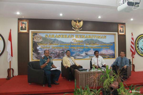 TANJUNGPINANG - Komandan Armada RI Kawasan Barat Pangkalan Utama TNI AL IV di Tanjung Pinang, menggelar seminar sehari sarasehan kemaritiman, Kamis (18/12), berlangsung di Mako Lantamal IV Tanjungpinang,