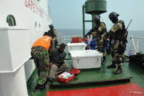 BATAM - Tim Satuan Tugas Komando Armada RI Wilayah Barat (Koarmabar) TNI AL berhasil mengamankan empat pelaku kejahatan di atas kapal asing yang selama ini sering beraksi di Selat Singapura dan Selat Philip, kini diamankan di Pangkalan TNI AL Batam.