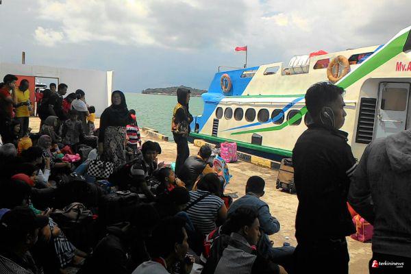 Kapal yang seharusnya berangkat pukul 11.00 Wib hingga pukul 12.30 belum juga diberngkatkan. Penumpang pun harus menunggu di pelabuhan berjam-jam.