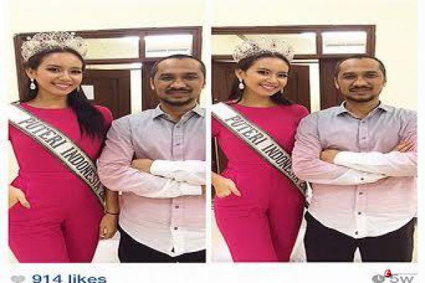 Pose keduanya pun tampak wajar tak neko-neko Samad memang pernah mengisi acara pembekalan di depan putri Indonesia. Mungkin di sana juga ada foto bersama. Apalagi selfie tengah naik daun.