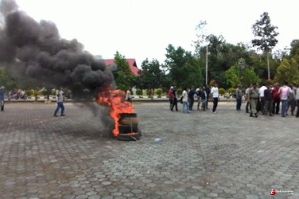 Kecewa, Pendemo DPRD Lingga Akhiri dengan Bakar Ban