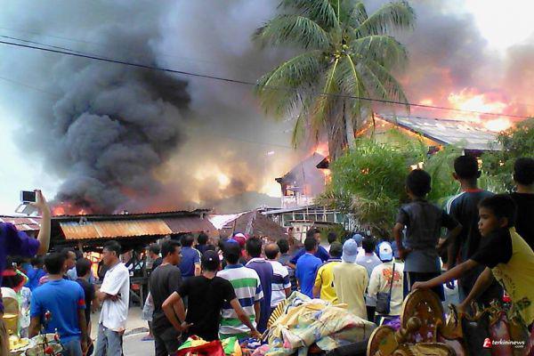 Salah seorang saksi mata, Agus, menjelaskan kejadian itu terjadi sekitar sore hari, saat warga sedang melakukan aktifitas. Tiba - tiba ada asap hitam tebal dan api yang membara menyambra ruko dan langsung membesar serta merembet ke ruko lainnya yang berhimpitan, serta Kapal Gt28 Jaring ikan yang terbuat dari fiber.