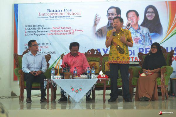 KARIMUN - Batam Pos Enterpreneur School (BPES) kembali digelar, kali ini yang menjadi sasaran adalah para pelajar, mahasiswa, dan pemuda di wilayah Kundur dan sekitarnya. Acara rutin dari divisi khusus di Batam Pos ini digelar pada Sabtu (7/2) di Aula Pertemuan SMA Negeri 1 Kundur Kecamatan Kundur.
