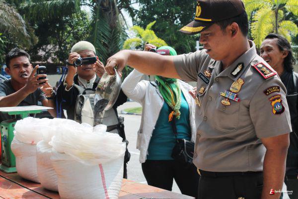 "Total berat pasir timah diamakankan 5,7 ton senilai Rp 500, yang diperkirakan Rp 120 ribu per kg. Penangkapan ini dilakukan karena ditenggarai pasir timah itu adalah hasil tambang liar yang juga diangkut, diolah dan dijual oleh kedua tersangka secara ilegal tanpa izin dari Dinas Pertambangan dan Mineral Kabupaten Karimun," terangnya.