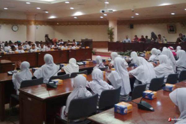 Ratusan siswa-siswi SD IT Yayasan Pendidikan I'aanatuth Thalibin, Perawang Barat, Siak kunjungi DPRD Riau. Dalam kunjungannya, salah seorang siswa bertanya, besaran gaji anggota DPRD Riau.?
