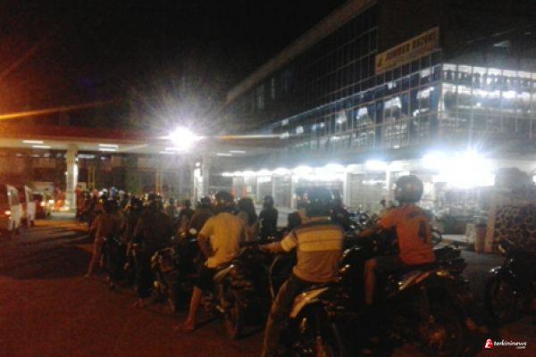 Alhasil, karena masih belum diperbaiki, kotak penyaluran yang digunakan untuk mobil di alih fungsikan untuk pengisian pada motor. Menurut pantauan terkininews.com, antrian pombensin sangatlah panjang pada magrib ini.