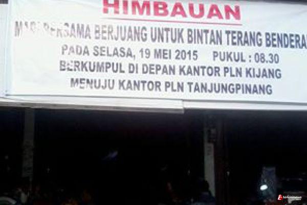 BINTAN - Masyarakat Peduli PLN Kota Tanjungpinang mengajak seluruh warga Bintan khususnya daerah Kijang untuk berunjuk rasa ke Kantor PT Perusahaan Listrik Negara Kepulauan, di Tanjungpinang, hari ini 19 Mei 2015.