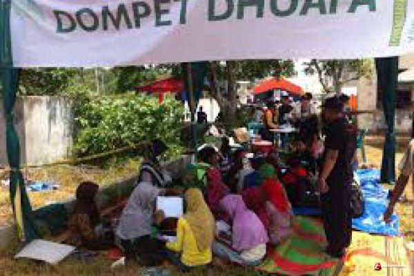 Kegiatan belajar mengajar dilakukan oleh tim Disaster Management Center (DMC) Dompet Dhufa dengan dibantu oleh tim Dompet Dhuafa Volunteer (DDV). Dompet Dhuaf membuat kegiatan di pengungsian antara lain rumah ceria, sekolah pengungsi, dan mengadakan kegiatan tadarus.