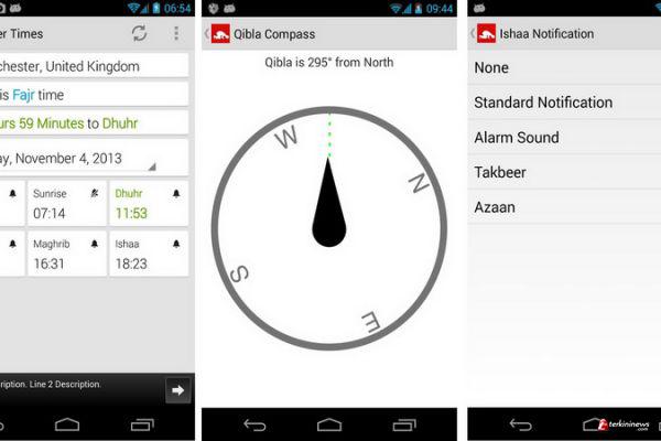 Untuk informasi mengenai jadwal shalat dan arah kibat, pengguna bisa mengunduh aplikasi Prayer Times with Qibla. Aplikasi ini menunjukkan waktu Subuh, Zuhur, Asar, Magrib dan Isya.