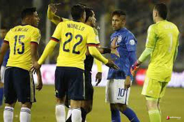 Secara sengaja, mantan bintang Santos itu melepaskan tendangan keras ke salah satu pemain Kolombia, Jeison Murillo. Namun, justru Carlos Bacca yang terpancing emosi dan langsung menghampiri Neymar, beruntung para pemain lain memisahkan keduanya. Akan tetapi, wasit Enrique Roberto Osses tetap memberikan kartu merah untuk Neymar dan Bacca.
