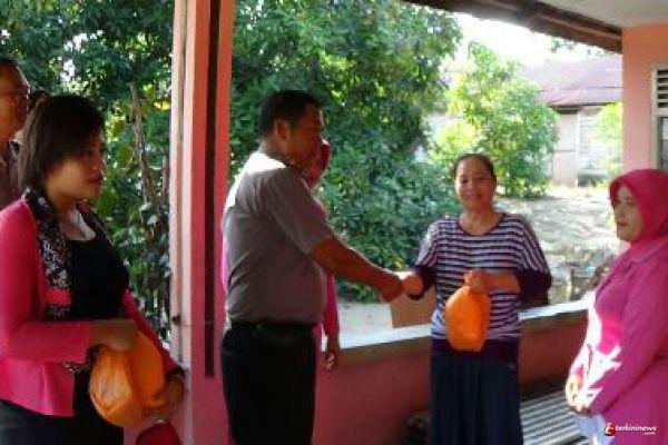 Didampingi sejumlah perwira serta pengurus Bhayangkari, Kapolsek dan istri juga menyerahkan santunan tersebut, dan menyambangi satu persatu kediaman para warakauri tersebut.